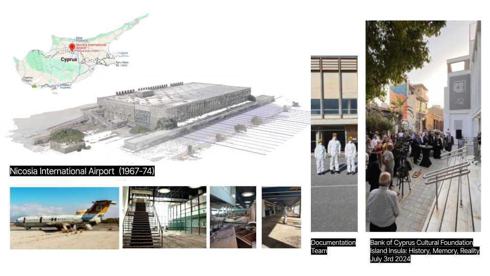 A museum installation featuring a reconstructed 3D model of Nicosia International Airport's modern terminal based on LiDAR scans and archival documentation, housed in a custom-designed wooden console with touchscreen navigation and immersive projection. I developed the participatory virtual environment to test dissertation methodologies on interface-mediated, co-constructive 'virtual places' for heritage, featuring our WIP "propositional model" for focusing public knowledge towards architectural features, and a period landline phone interface for oral story contribution. I also designed and developed the companion website at velab.cloud/nic/en ↗. Deployed in a public exhibition at the Bank of Cyprus Cultural Foundation, the project captured over 3,200 play sessions and 300 oral story recordings, generating new qualitative data that enriches, expands, and challenges the site's limited documentation. See the development timeline ↗ for in-progress screenshots and photos.